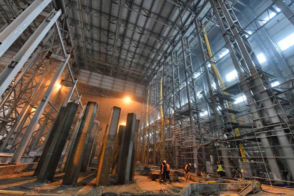 Сегодня на строительстве экологических мощностей задействовано почти 3 000 человек персонала. С начала старта работ смонтировано более 2 000 т оборудования и 12 000 т металлоконструкций.