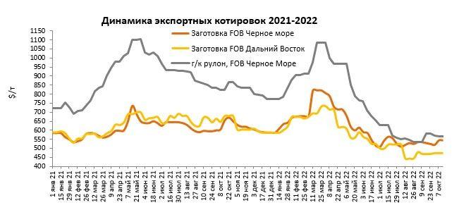 На азиатских рынках активность немного возросла после празднования Национального дня Китая. В основном на фоне оптимизма рынка в отношении ожидаемого оживления спроса, частично из-за потребностей в пополнении запасов после праздников. Масштабных изменений в ближайшей перспективе не ожидается. Коэффициент использования производственных мощностей сталелитейных заводов Китая на уровне 88,98% (всего на 0,17% ниже, чем на конец сентября), что свидетельствует о стабильной работе большинства производителей стали в стране. В то же время цены на стальные полуфабрикаты в Азии еще больше укрепились до широкого диапазона в 500-540$ за баррель для заготовок и 480-540$ за баррель для слябов, поскольку предложение сократилось по сравнению с предыдущими несколькими неделями.